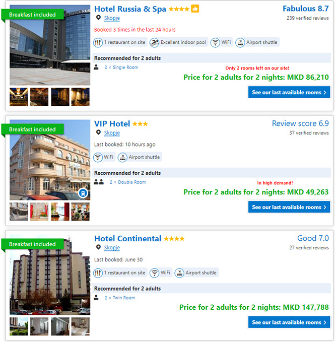 Knapp unter Hunderttausend liegt das günstigste Zimmer mit 98000 Denar. So müssen Fußballfans mit Preisen für das Wochenende von Mindestens 1500 € für ein Zimmer ausgehen!
