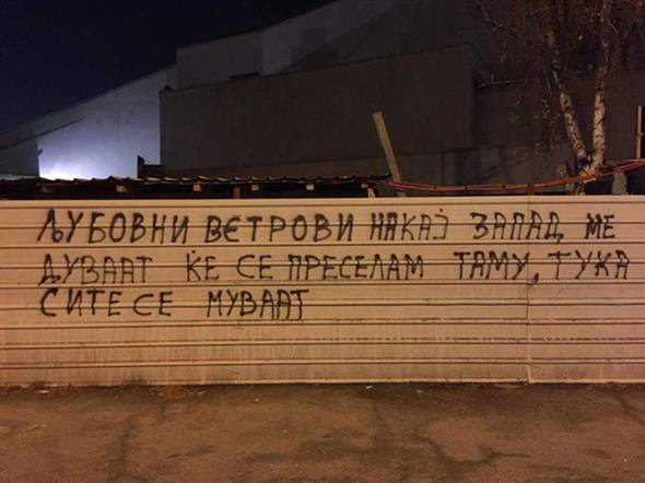 | Du hast mich aus der Fahrbahn geworfen, Du hast mich aus der Achse gebracht. Du bist bis auf die Knochen in mir gegangen (Auf mazedonisch hat das alles einen schönen Reim) |